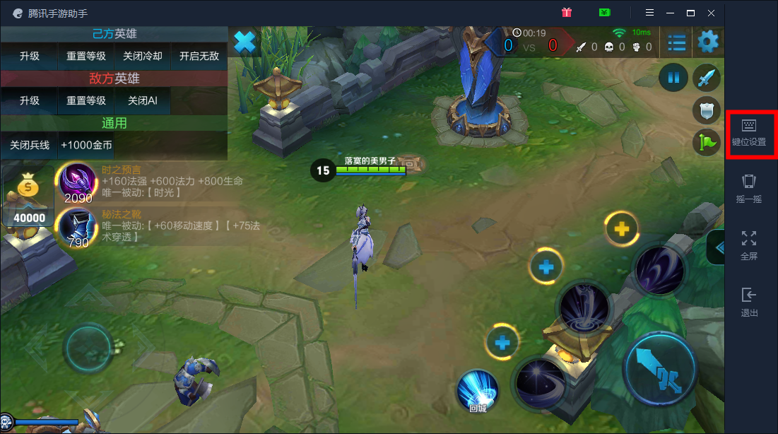 1、打开腾讯手游助手,进入王者荣耀游戏界面,用于对应技能位置进行按键位置调整,点击界面右边的“键位设置”进入设置