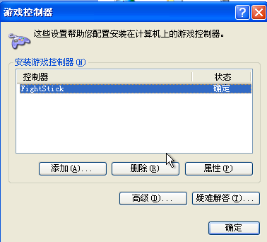 5.. 在弹出的“游戏控制器”窗口,双击“FightStick”或者点击“属性”进行按键测试(注:不同系列产品型号不同,以具体型号为准)