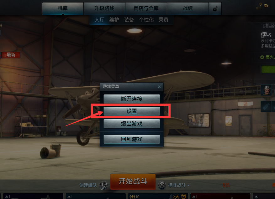 1、摇杆在驱动中测试功能OK后。进入游戏后,按下键盘上的ESC键弹出如下对话框,选择“设置”菜单。
