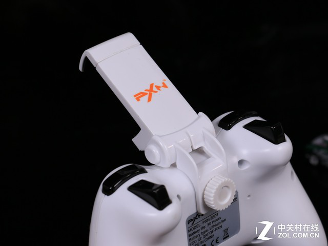 手柄背部顶端还带有一个螺丝孔,用来固定手机支架。安装也很简单,只需要将附带的支架手动拧到螺丝位即可,可能由于带有金属垫的原因,一开始拧的时候可能有点紧,用户不用担心,继续拧下去即可。